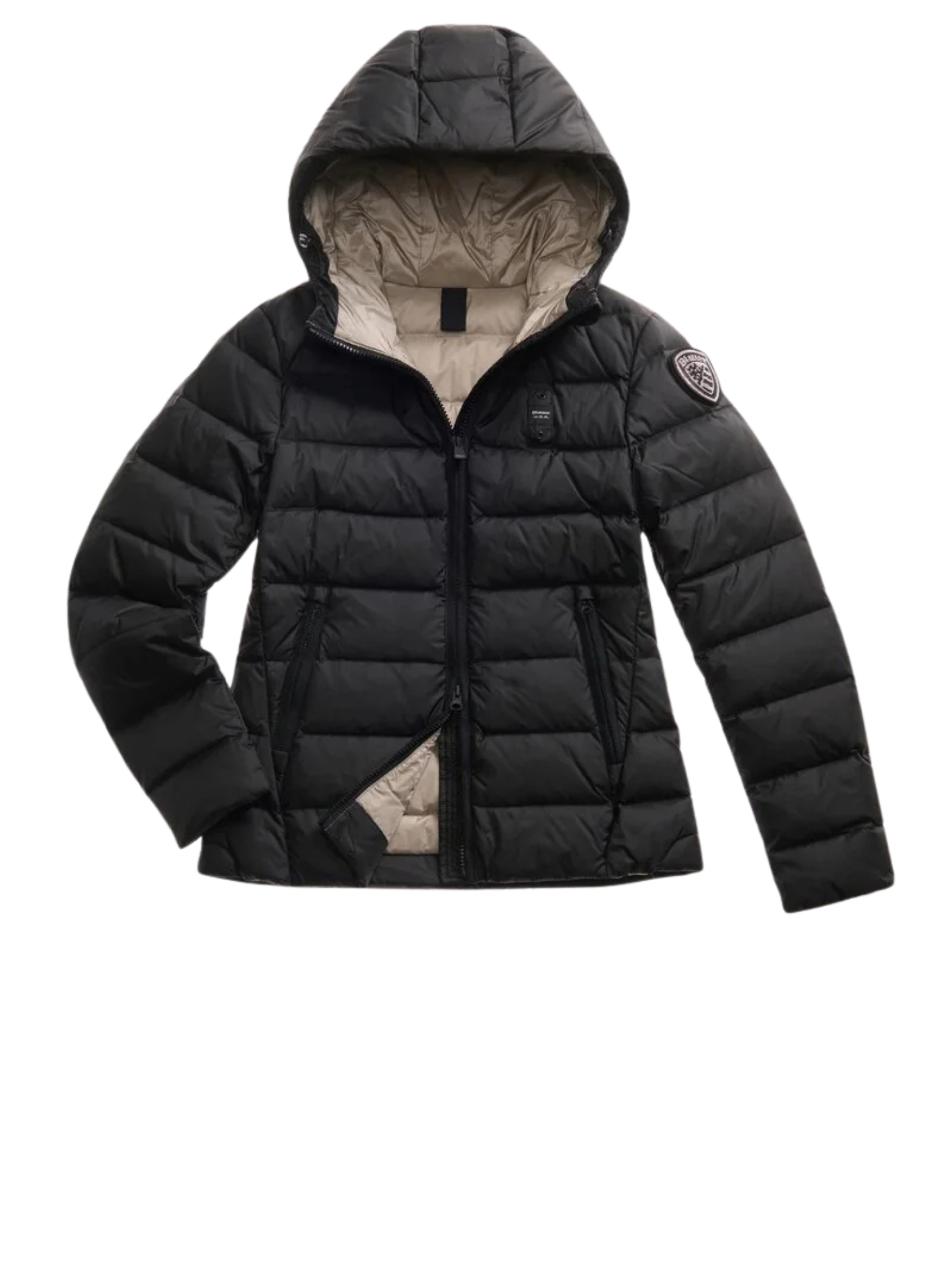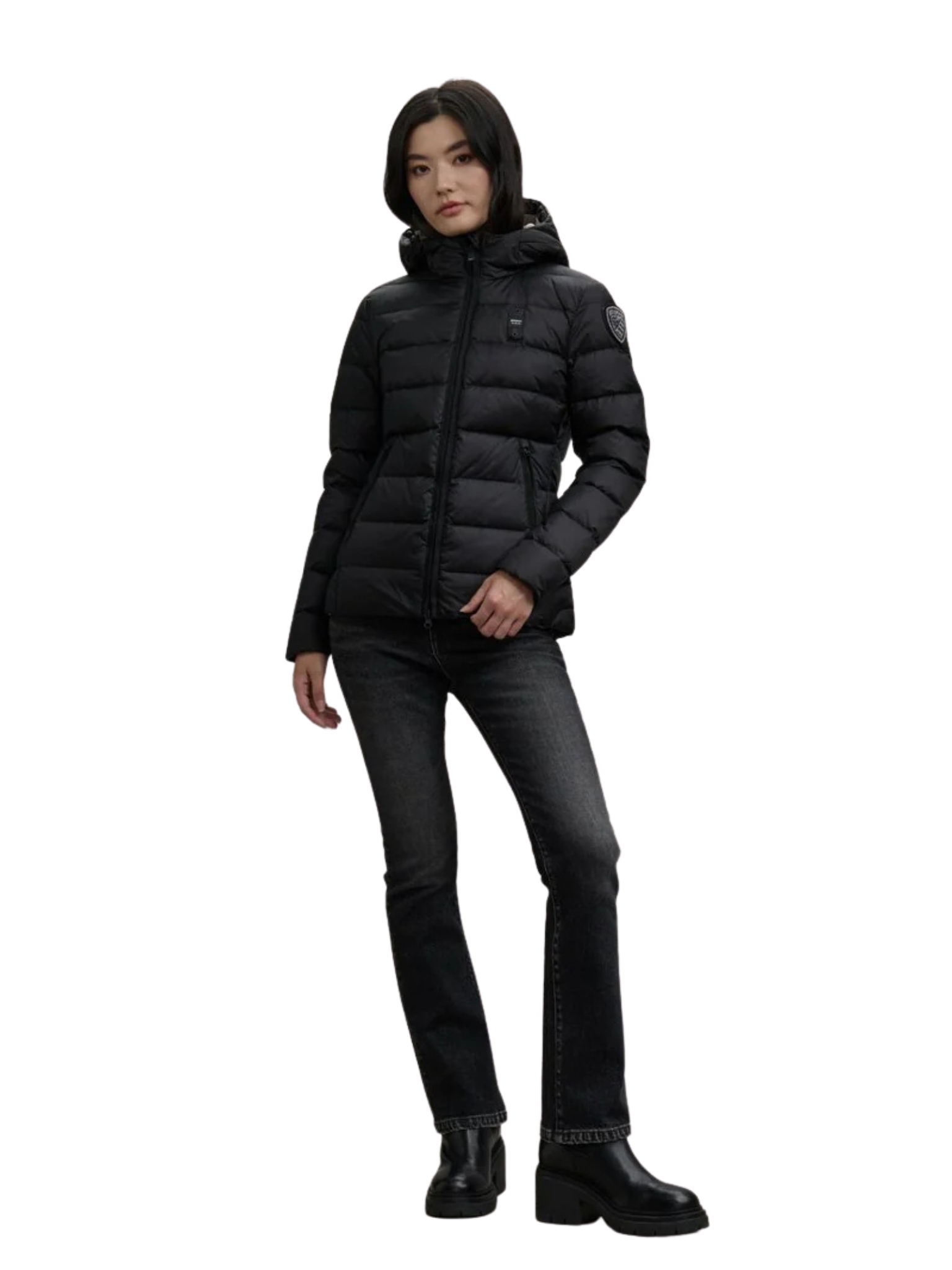 Piumino idrorepellente trapuntato a righe orizzontali. Capo con imbottitura leggera, calda e non ingombrante, dai colori fashion e dal taglio che risalta il punto vita.