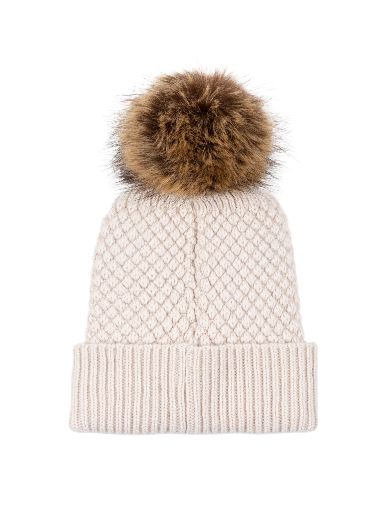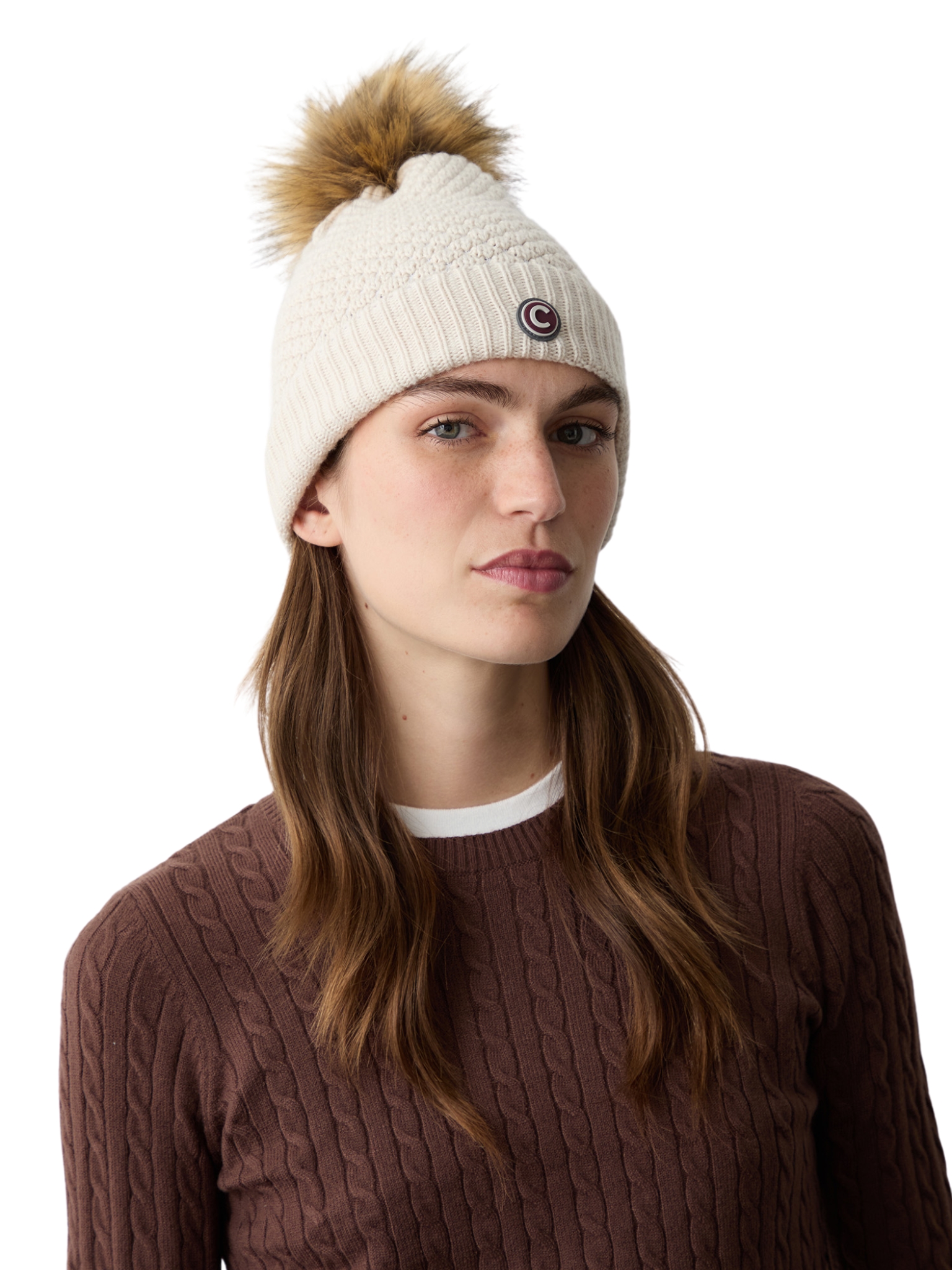 Perfetto per garantire calore durante tutto l'inverno, questo cappello in grana di riso, è l'accessorio ideale per offrire protezione. Il risvolto a costine è impreziosito da un patch con logo discreto, mentre il pompon in pelliccia sintetica aggiunge un tocco distintivo