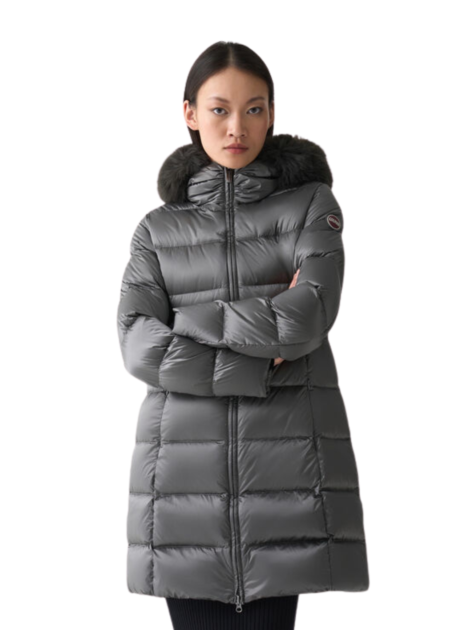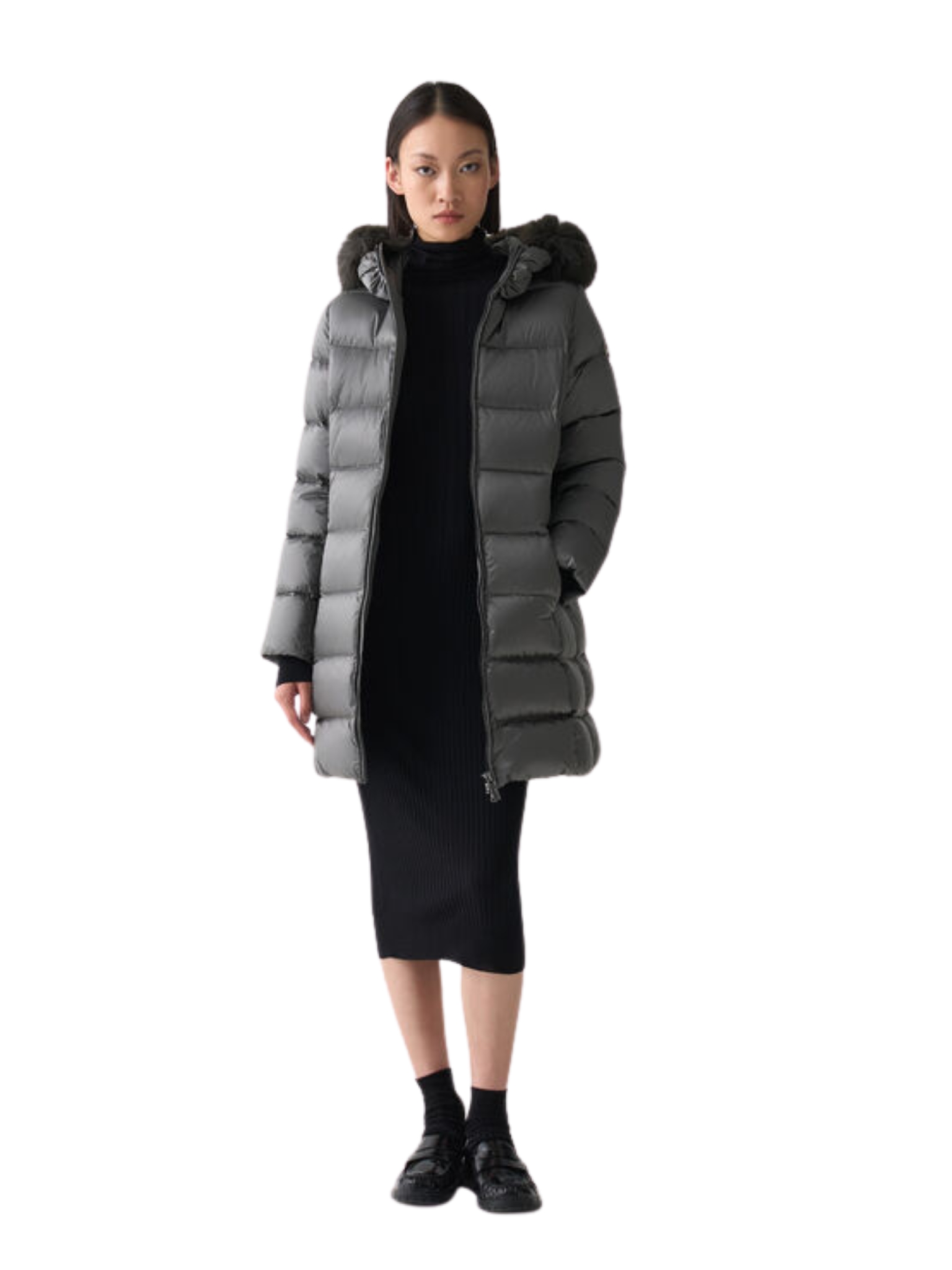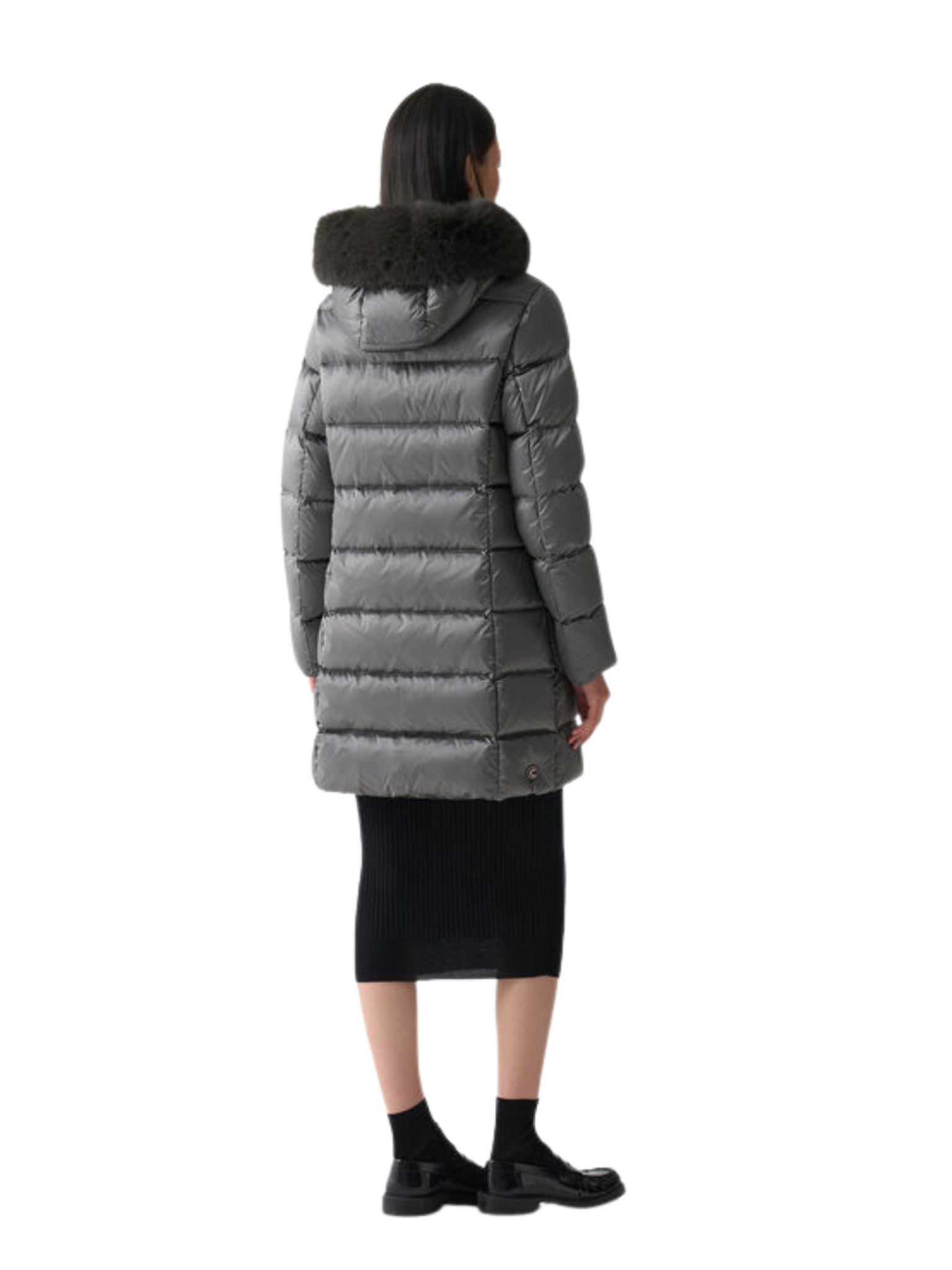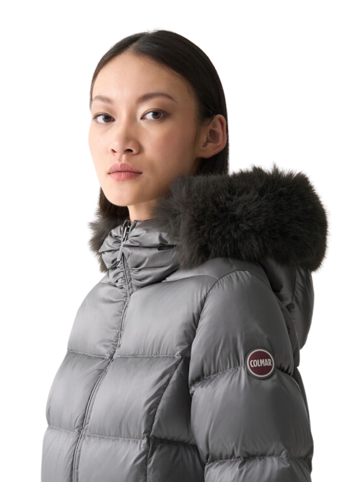 Questo piumino da donna offre calore senza rinunciare allo stile. Il cappuccio in pelliccia sintetica e le tasche laterali aggiungono un tocco sofisticato, mentre il taglio medio lungo e avvitato esalta la silhouette. Il collo avvolgente garantisce una protezione extra dal freddo, rendendolo l'alleato perfetto per affrontare la stagione con classe e praticità
