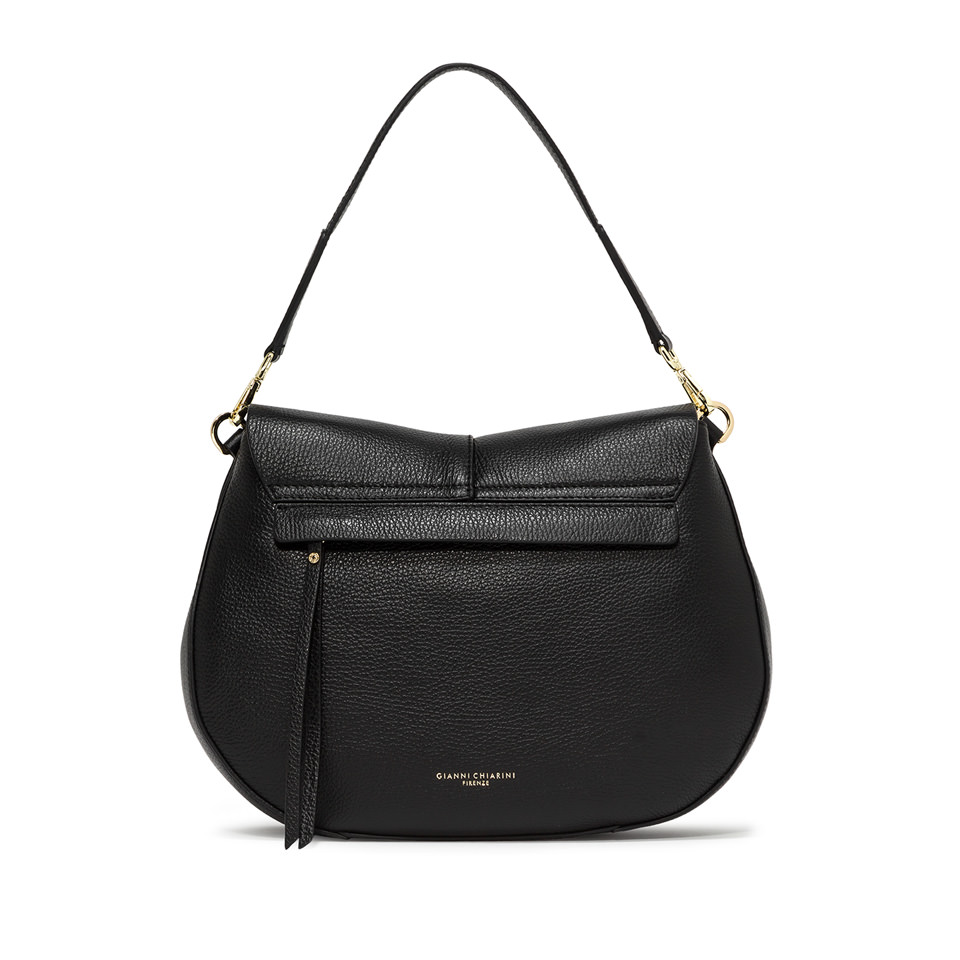 Liconica Helena Round di Gianni Chiarini Firenze, in pelle martellata, si distingue per il suo design strutturato dallappeal contemporaneo. Versatile e funzionale, è dotata di una tracolla per una doppia portabilità e offre unorganizzazione impeccabile grazie al doppio compartimento interno e alla tasca a scomparsa sul retro. Dimensioni: 33x24x9 cm.