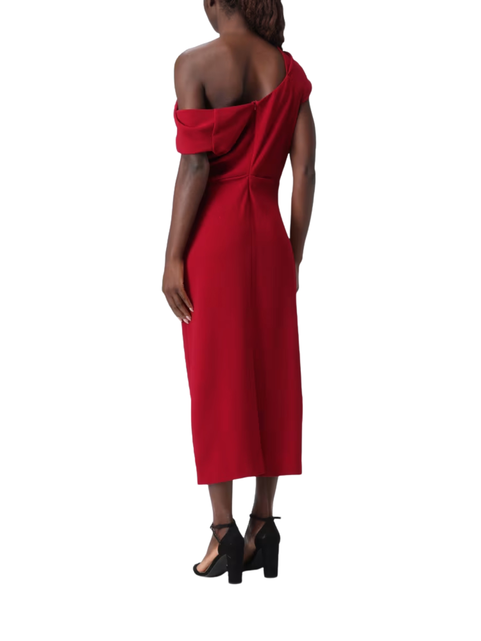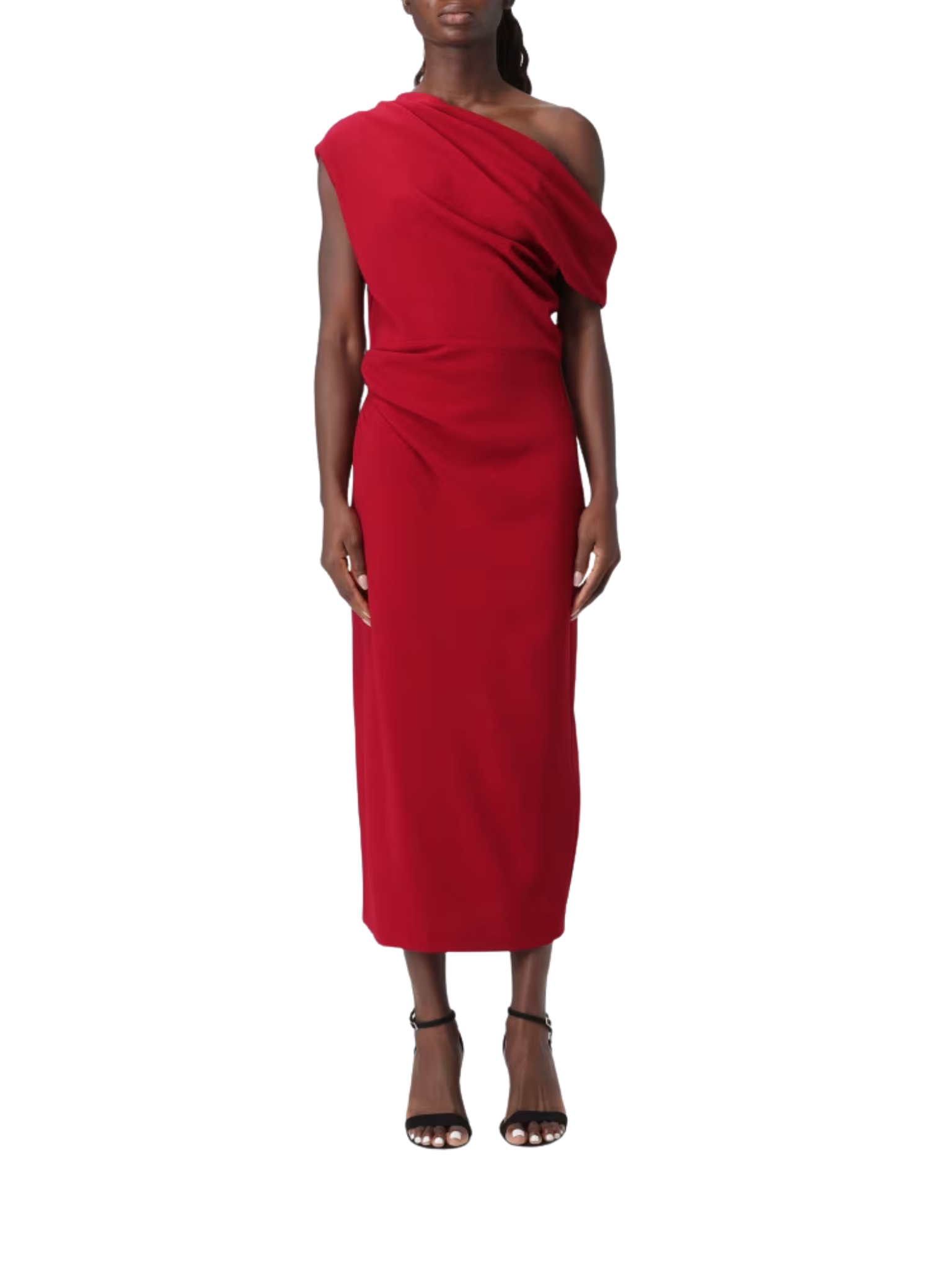abito midi con scollo asimmetrico in crepe elastico