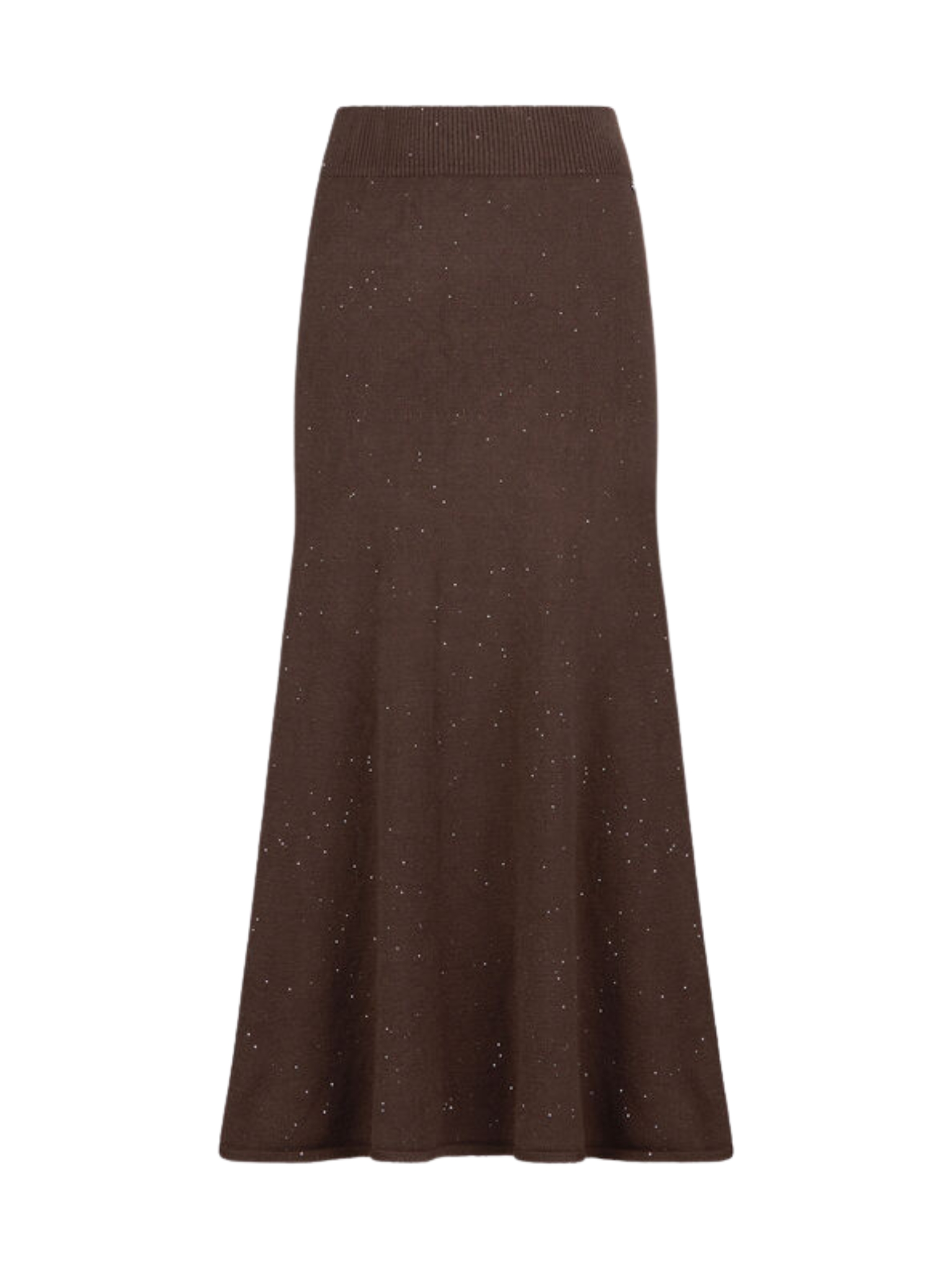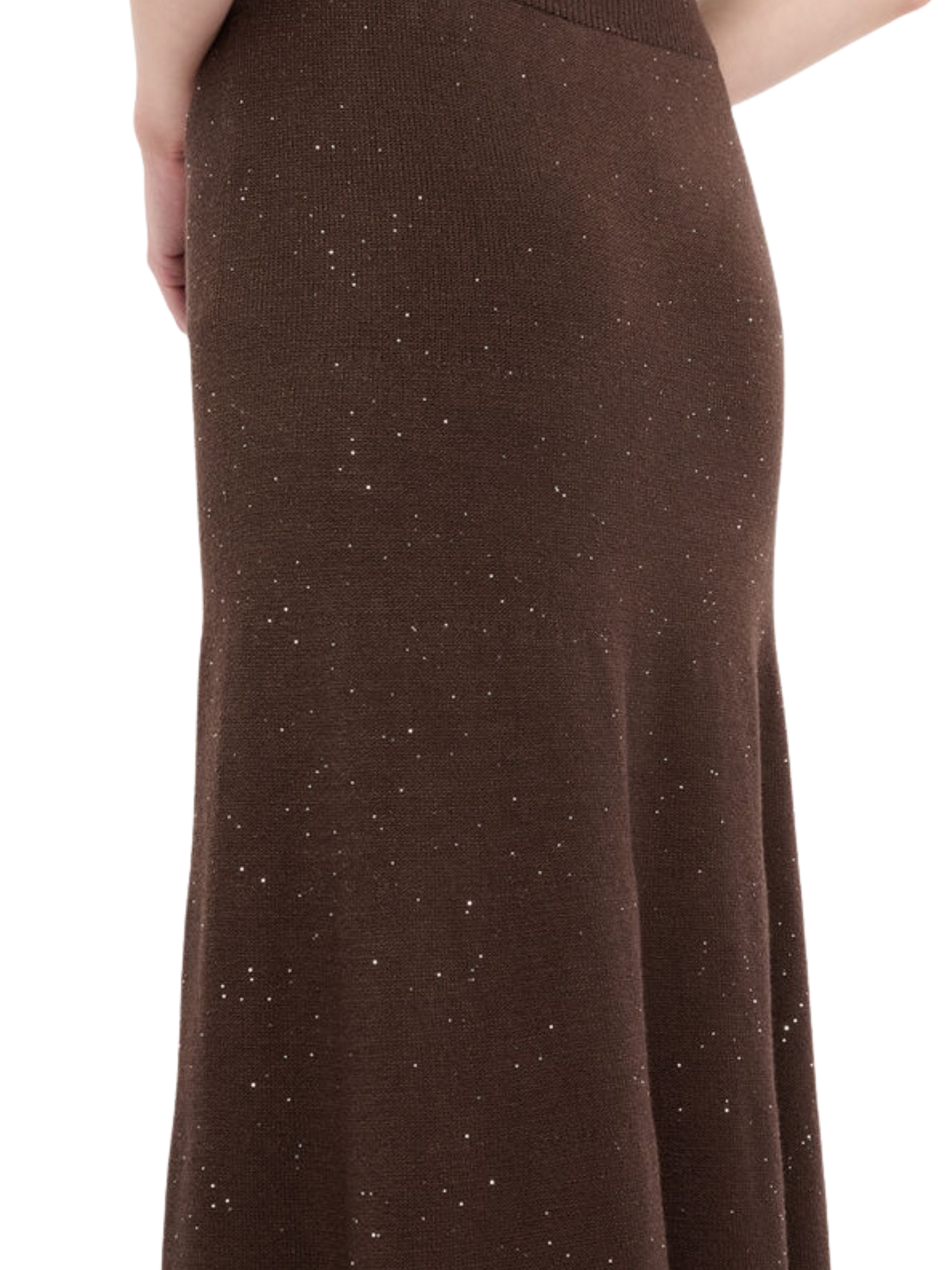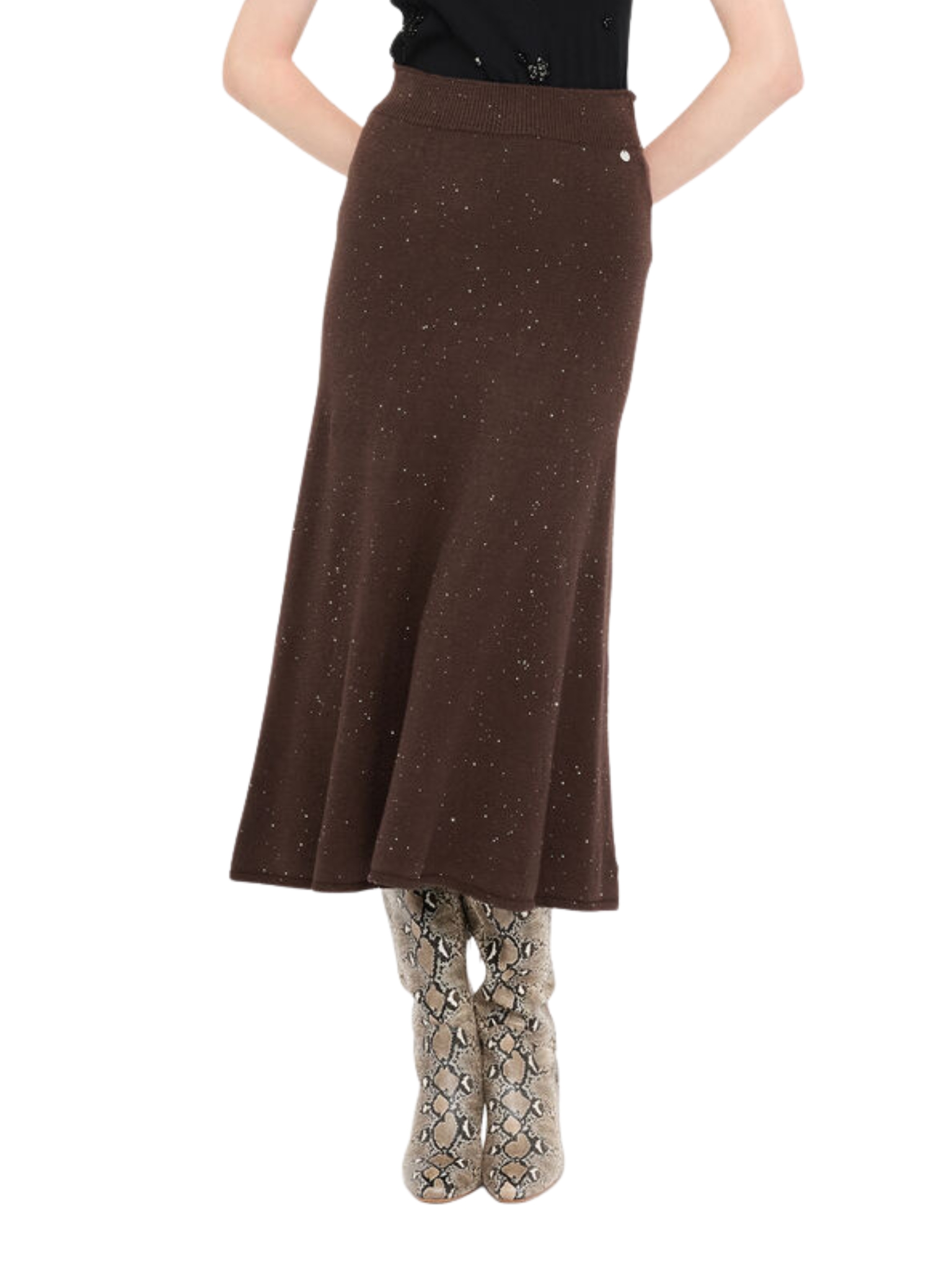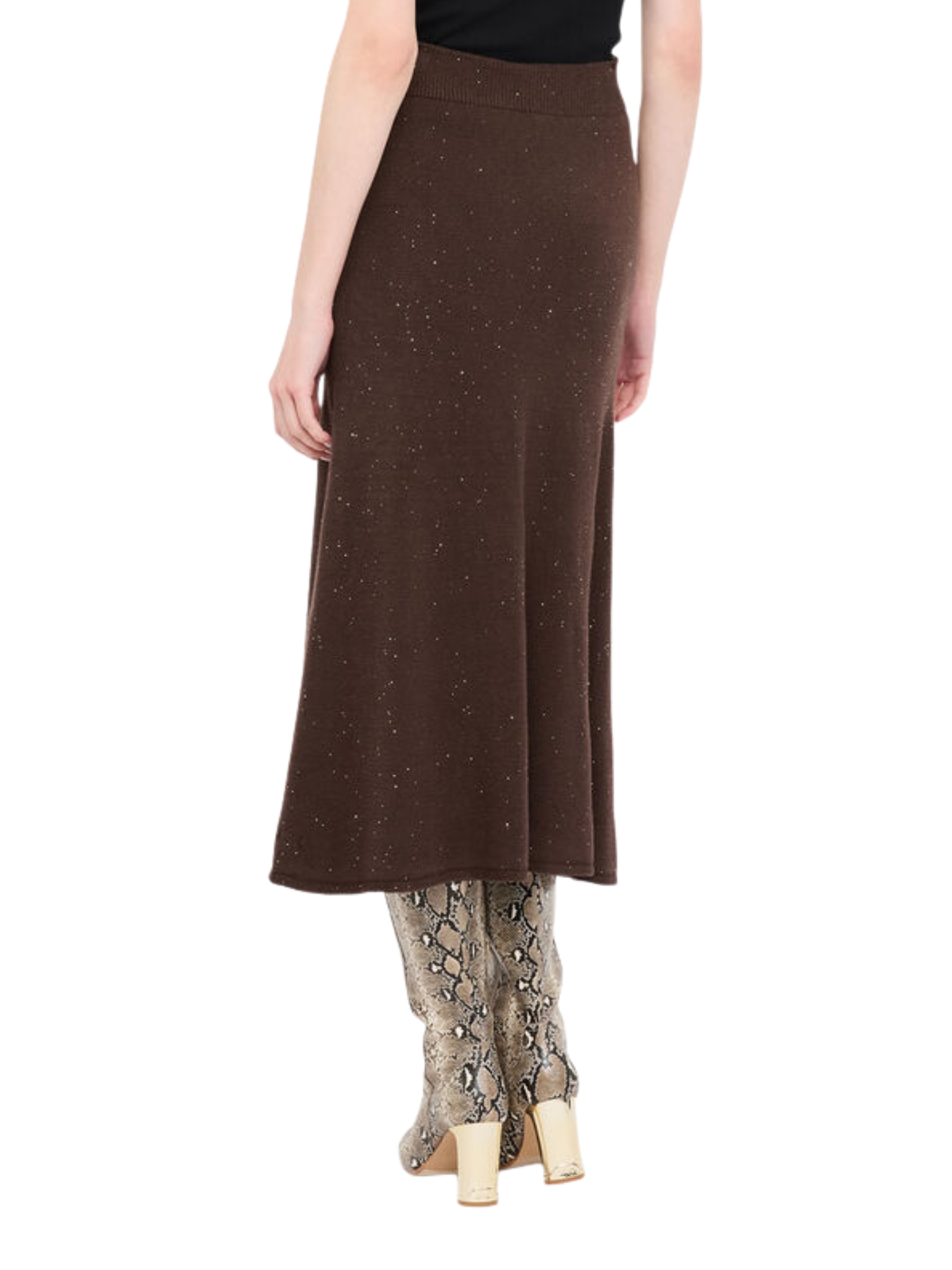 Gonna midi in maglia con paillettes CIOCCOLATO