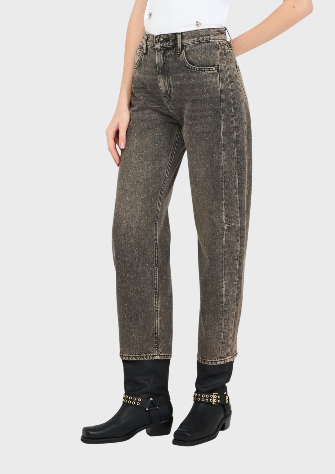 Jeans boyfriend con glitter GRIGIO