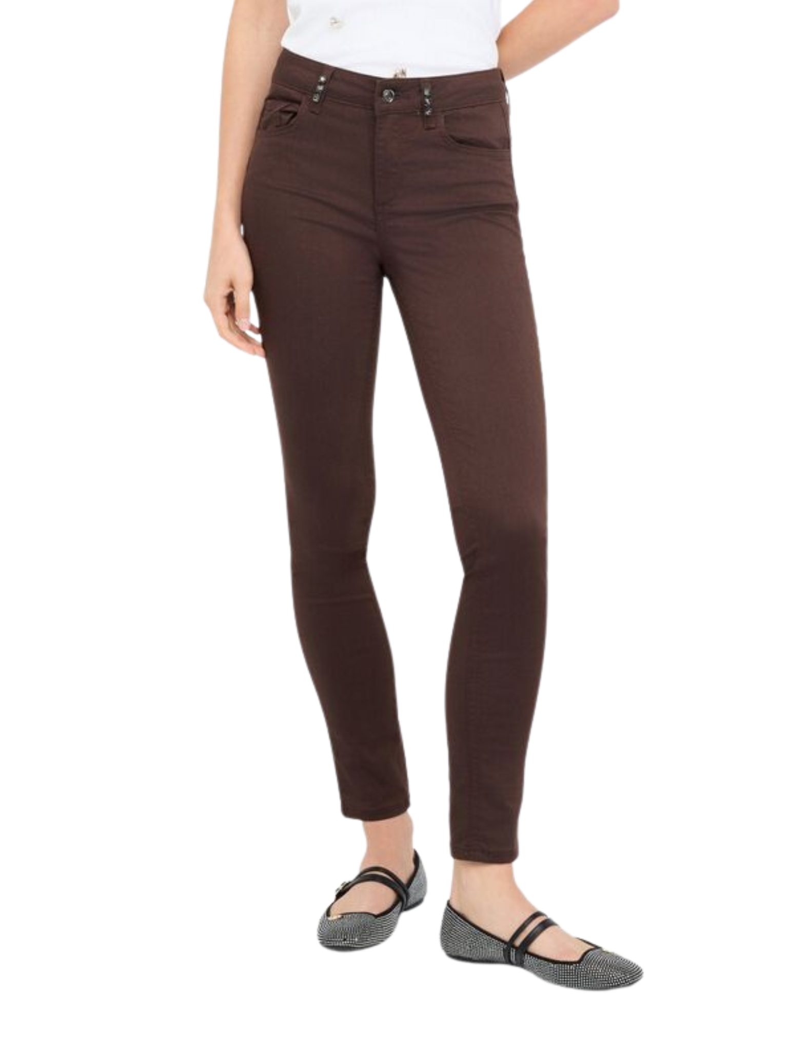 Pantaloni skinny con pietre gioiello CIOCCOLATO