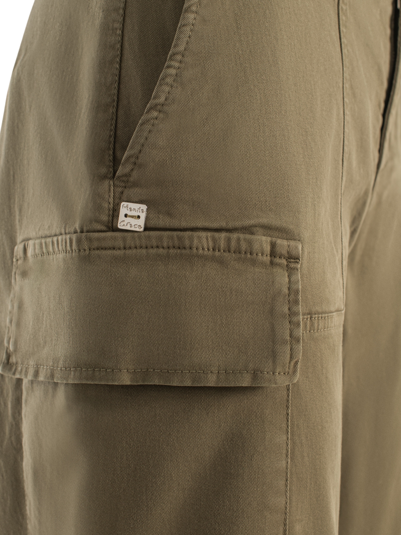 Dinamico e grintoso, il pantalone cargo Manila Grace è realizzato in cotone tinto capo, una lavorazione che dona profondità cromatica e un tocco vissuto. Il modello presenta ampie tasche laterali con patta, cuciture sagomate e una linea dritta leggermente morbida. Perfetto da abbinare a una t-shirt fitted o una camicia cropped per un look contemporaneo e disinvolto.