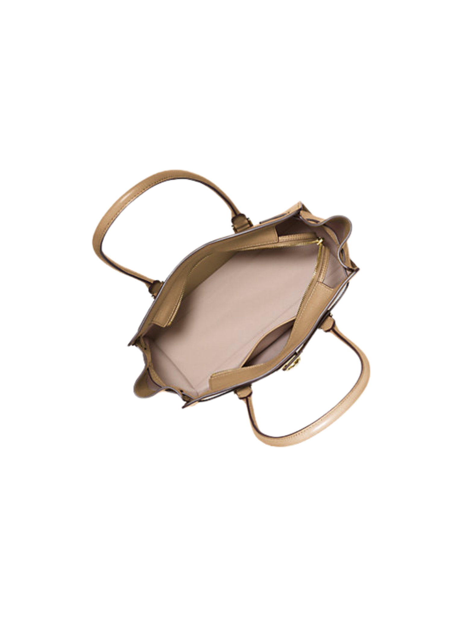 Borsa a mano in pelle con dettagli in metallo tonalità oro.
