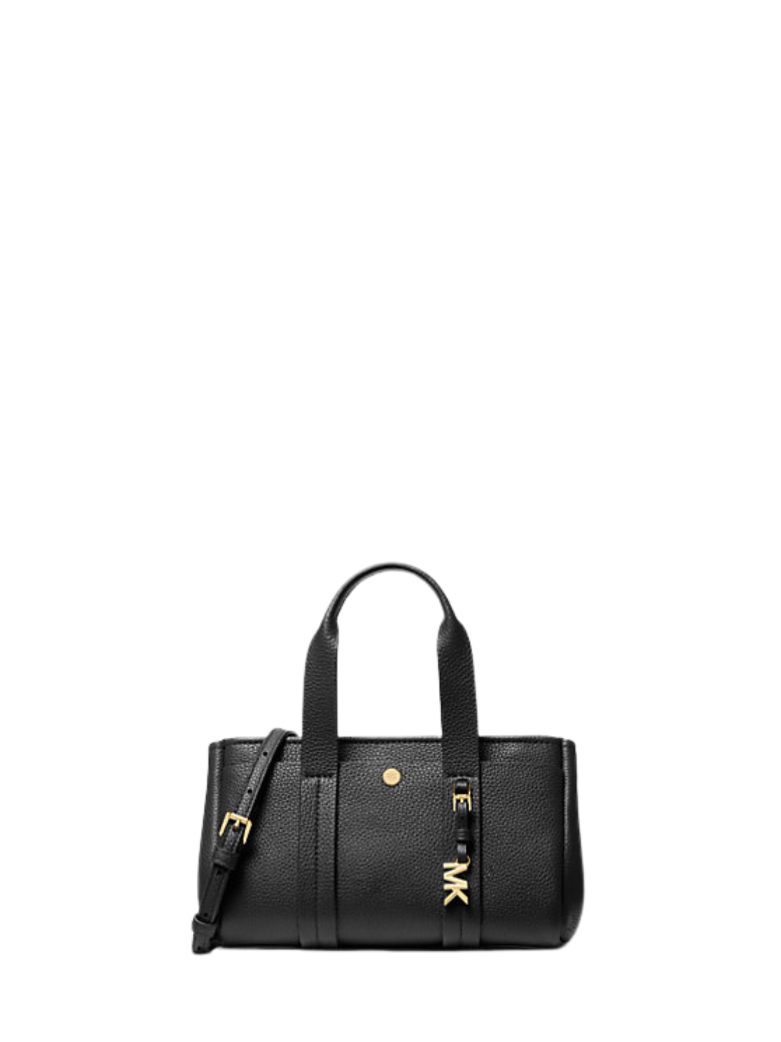 Borsa a tracolla in pelle martellata, dettagli in metallo tonalità oro. Dimensioni 14 cm L X 14 cm A X 23,5 cm P, tracolla regolabile: 48,3-54,6 cm, altezza del manico: 11,4 cm. Dettagli esterno: tasca anteriore con chiusura a scatto dettagli interno: tasca posteriore a bustina. Chiusura con zip. Custodia antipolvere non inclusa