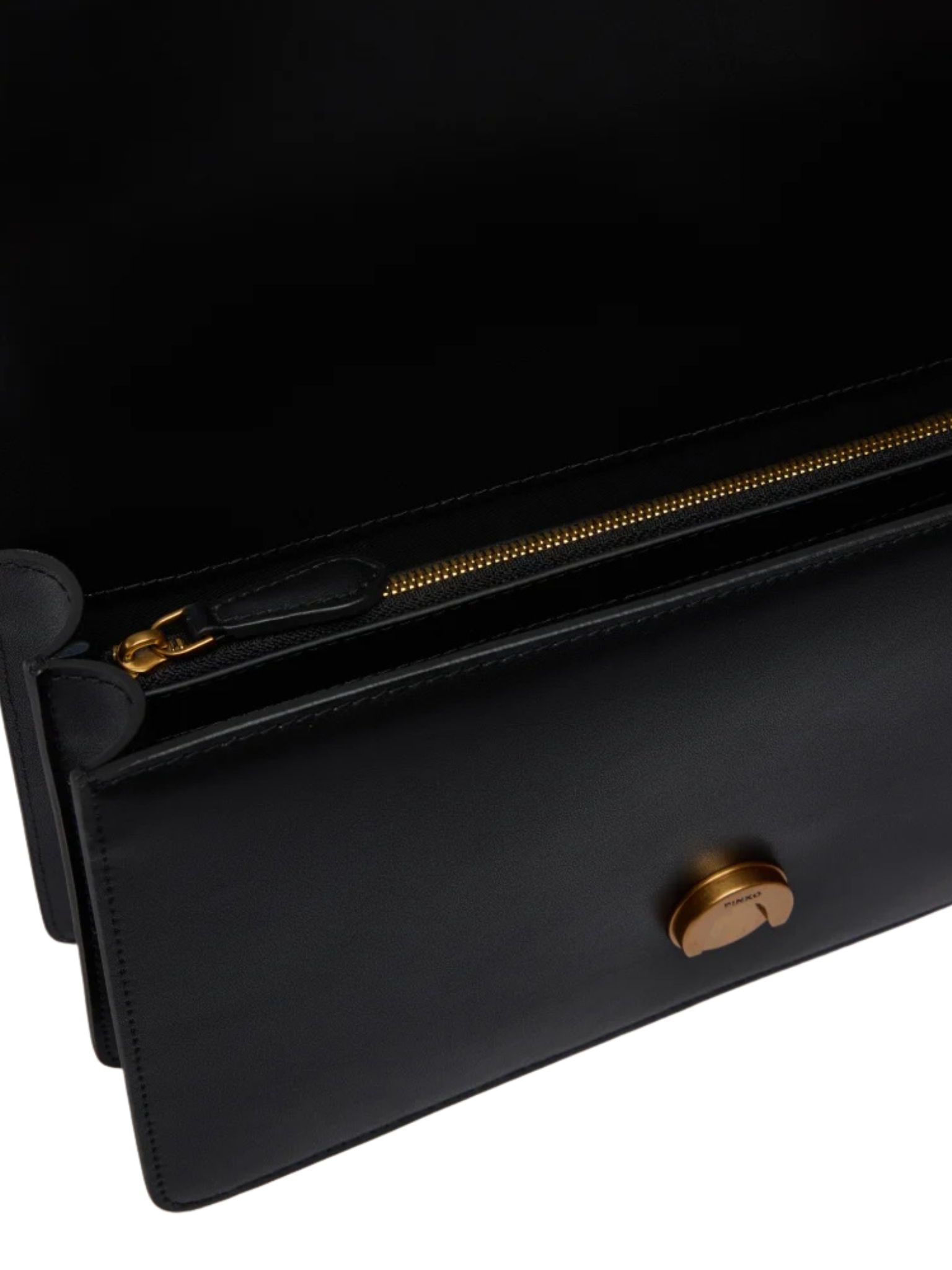 Borsa a mano media Love Bag One realizzata in pelle dalla mano seta. Caratterizzato dalla tracolla regolabile e rimovibile in pelle e catena, il modello risulta estremamente versatile e pratico. La chiusura a baccello con bottone magnetico è completata da fibbia con logo uccellini Love Birds Diamond Cut e piccole borchie in metallo. L'interno è foderato in cotone e presenta una tasca con zip per tenere al sicuro i tuoi essenziali. Attiva la tua borsa PINKO: verifica l'autenticità del tuo prodotto e accedi all'esperienza personalizzata avvicinando il tuo smartphone al ricamo Love Birds che trovi sul retro della borsa!