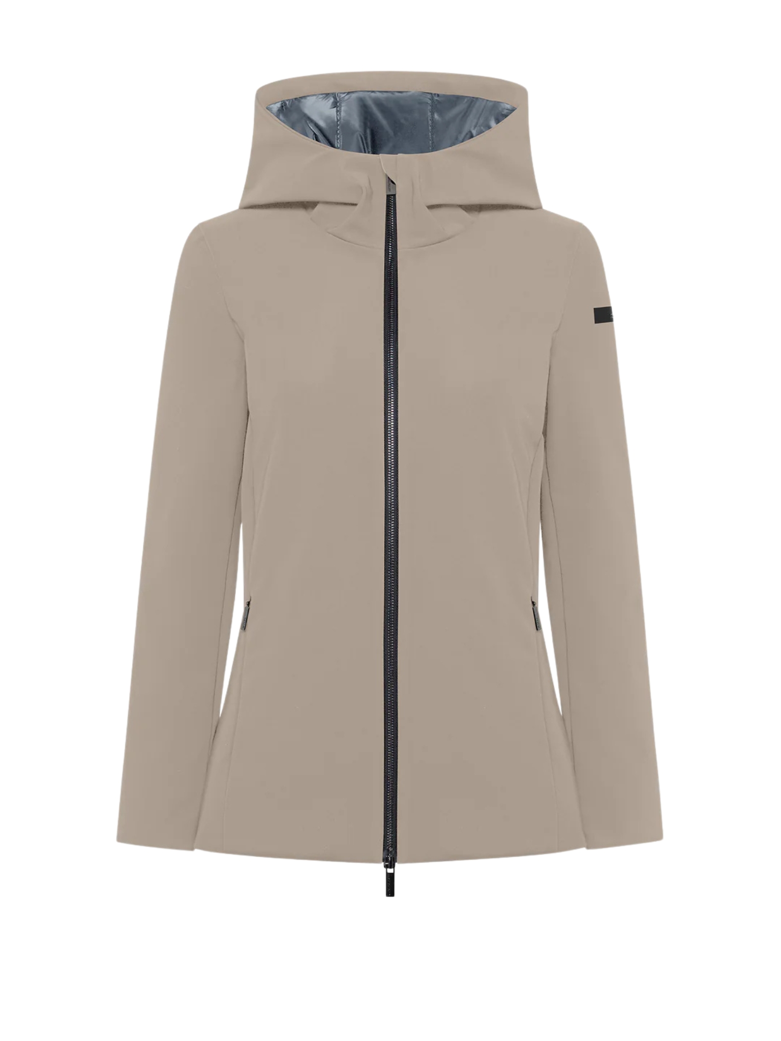 Piumino realizzato nel tessuto a membrana Stratofabric #3, impermeabile e traspirante. L'esterno nell'esclusivo SURFLEX® conferisce un finish super opaco, che ne esalta il design nitido e minimalista. L'imbottitura del capo in piuma d'anatra 90/10 è contenuta nei canali tubici, che prevengono l'uscita della piuma garantendo un calore avvolgente e una leggerezza di indosso unica. Il cappuccio avvolgente, la vestibilità confortevole e la leggera sciancratura in vita valorizzano delicatamente il look femminile del capospalla.
