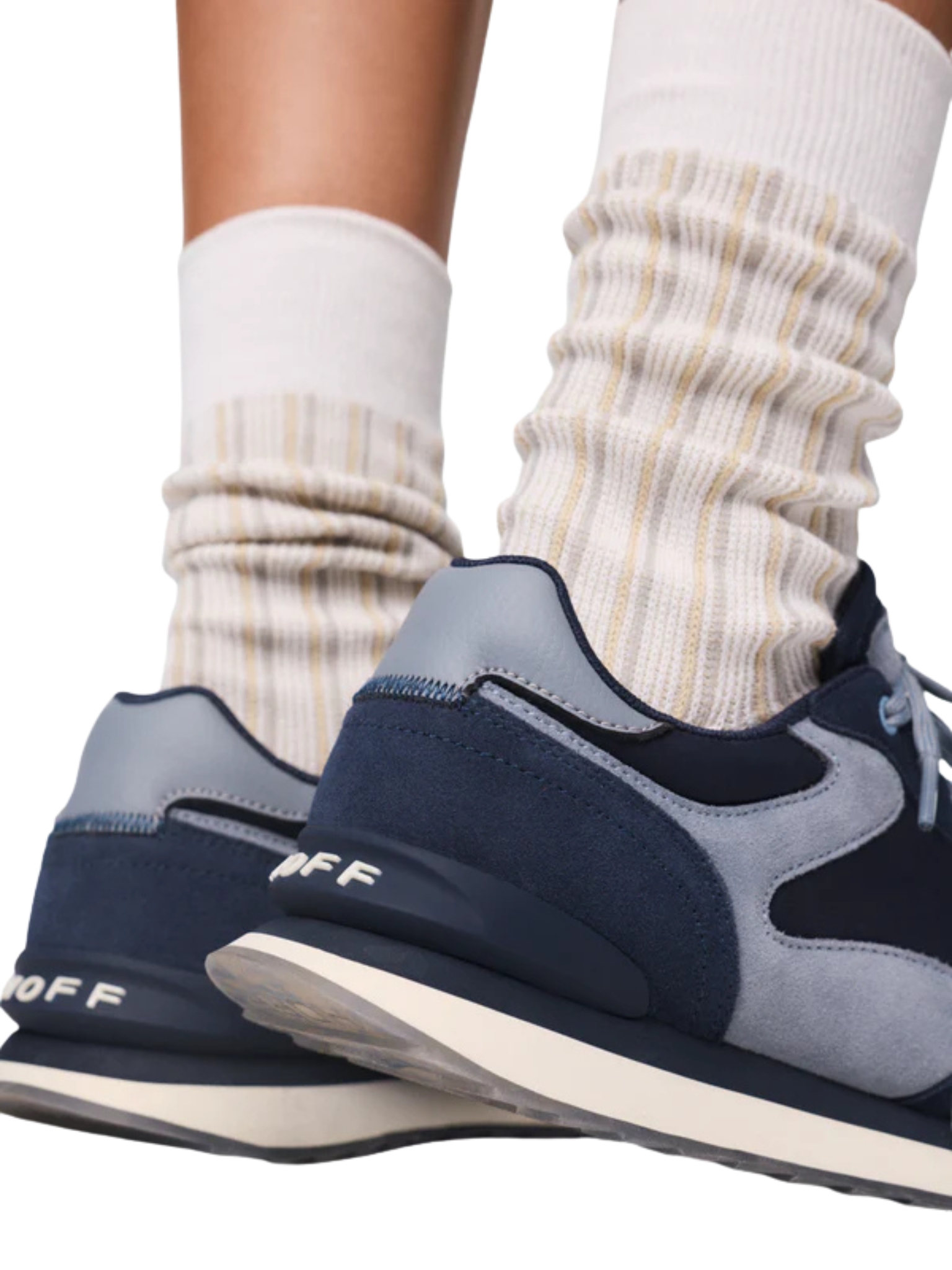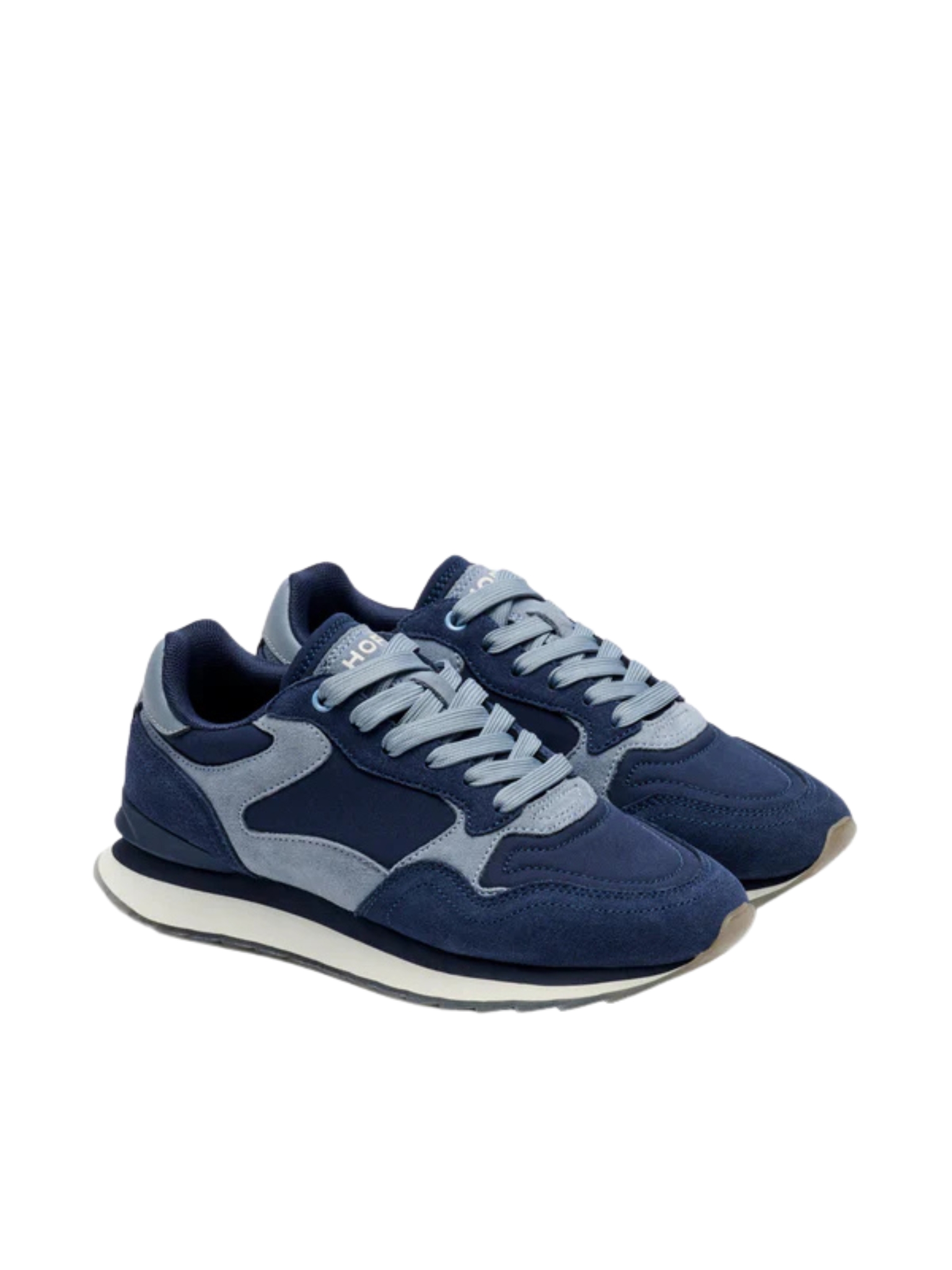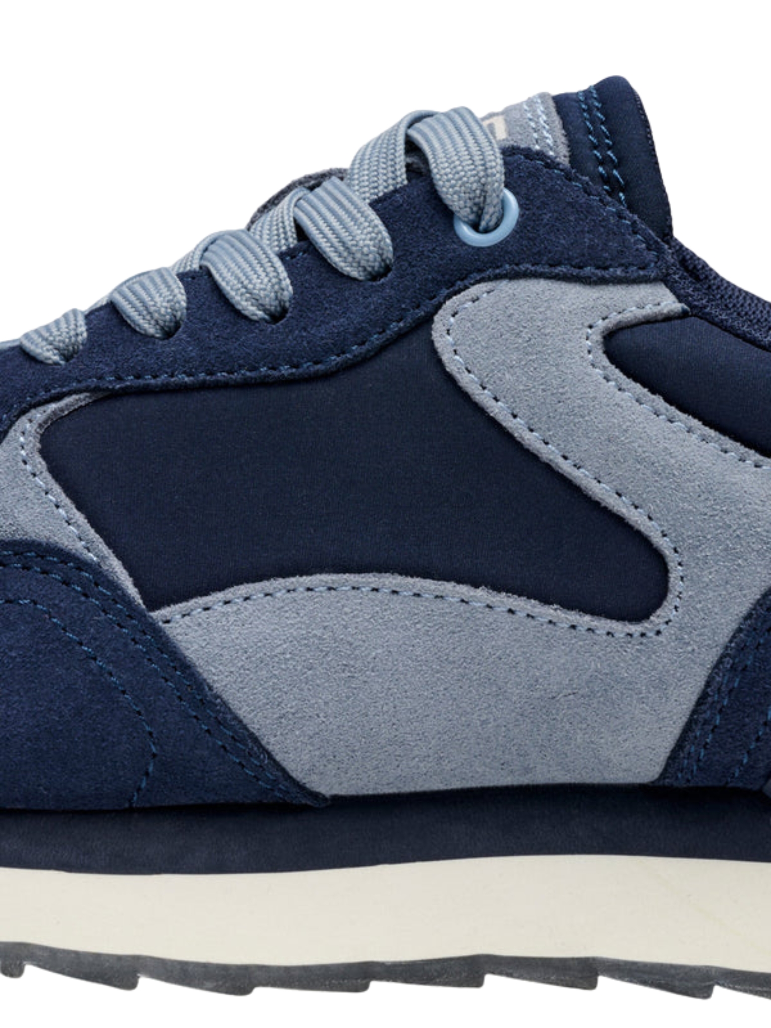 Sneaker in stile rétro con combinazione di colori e materiali. Dettaglio logo sul retro. Suola stampata. Chiusura con lacci.