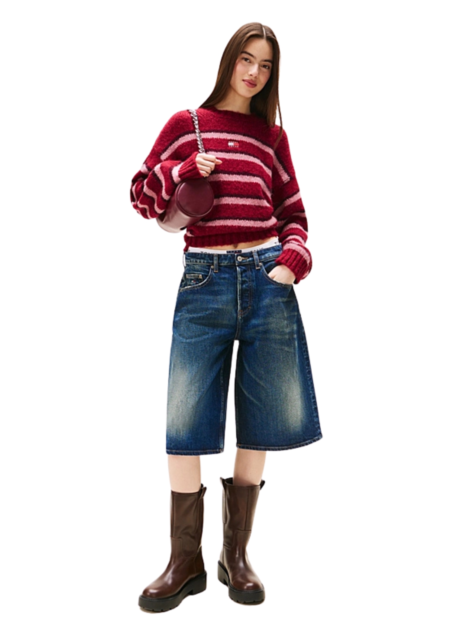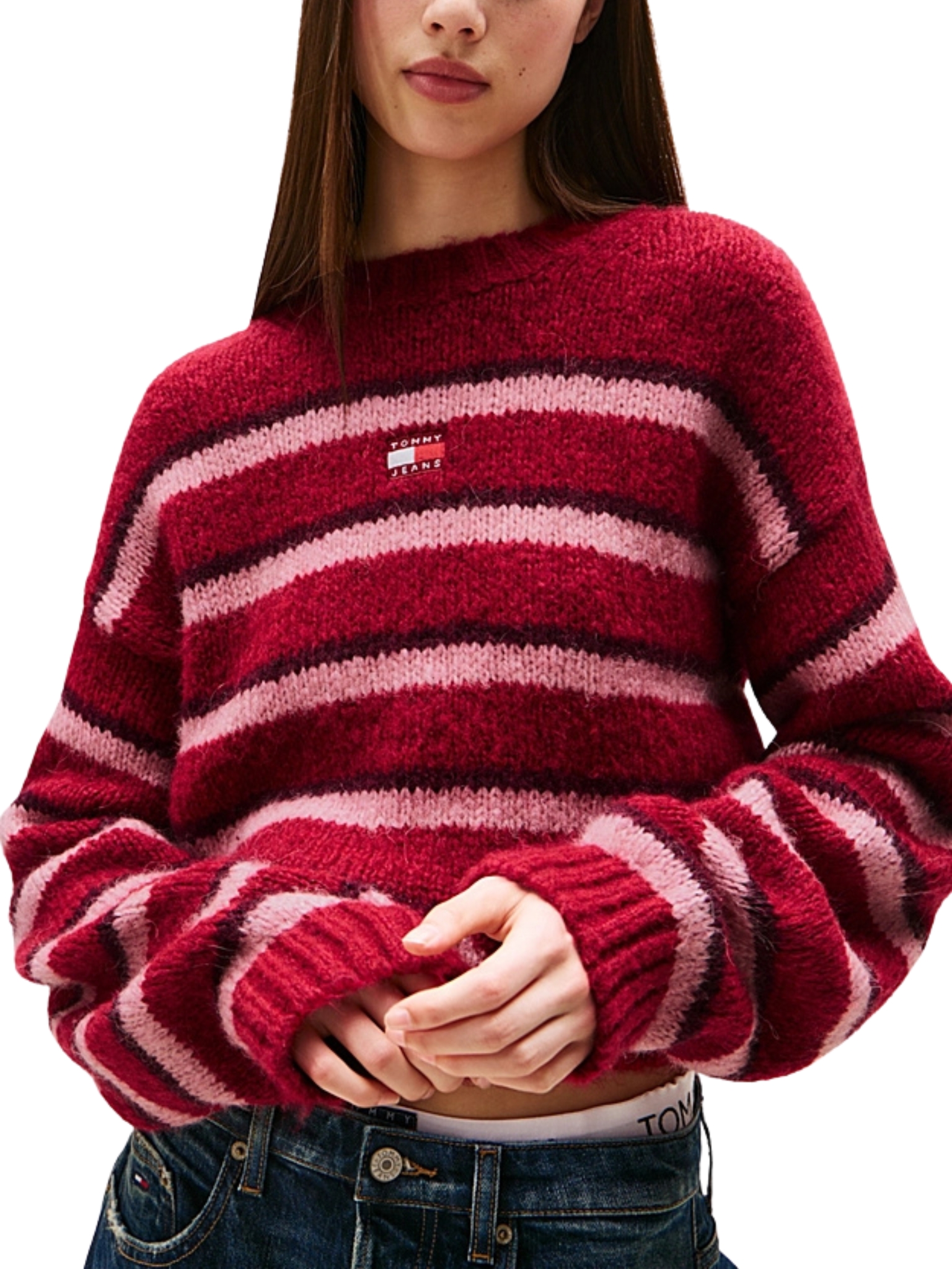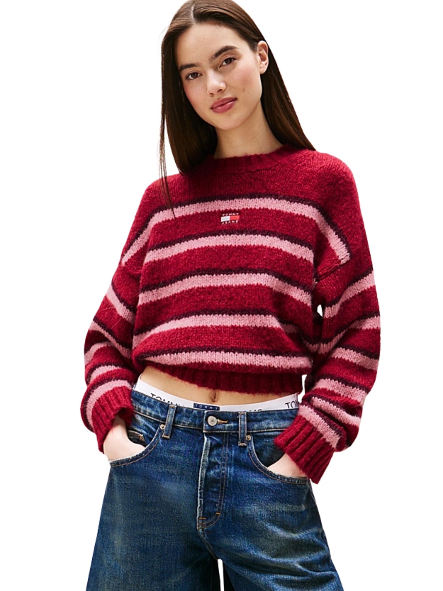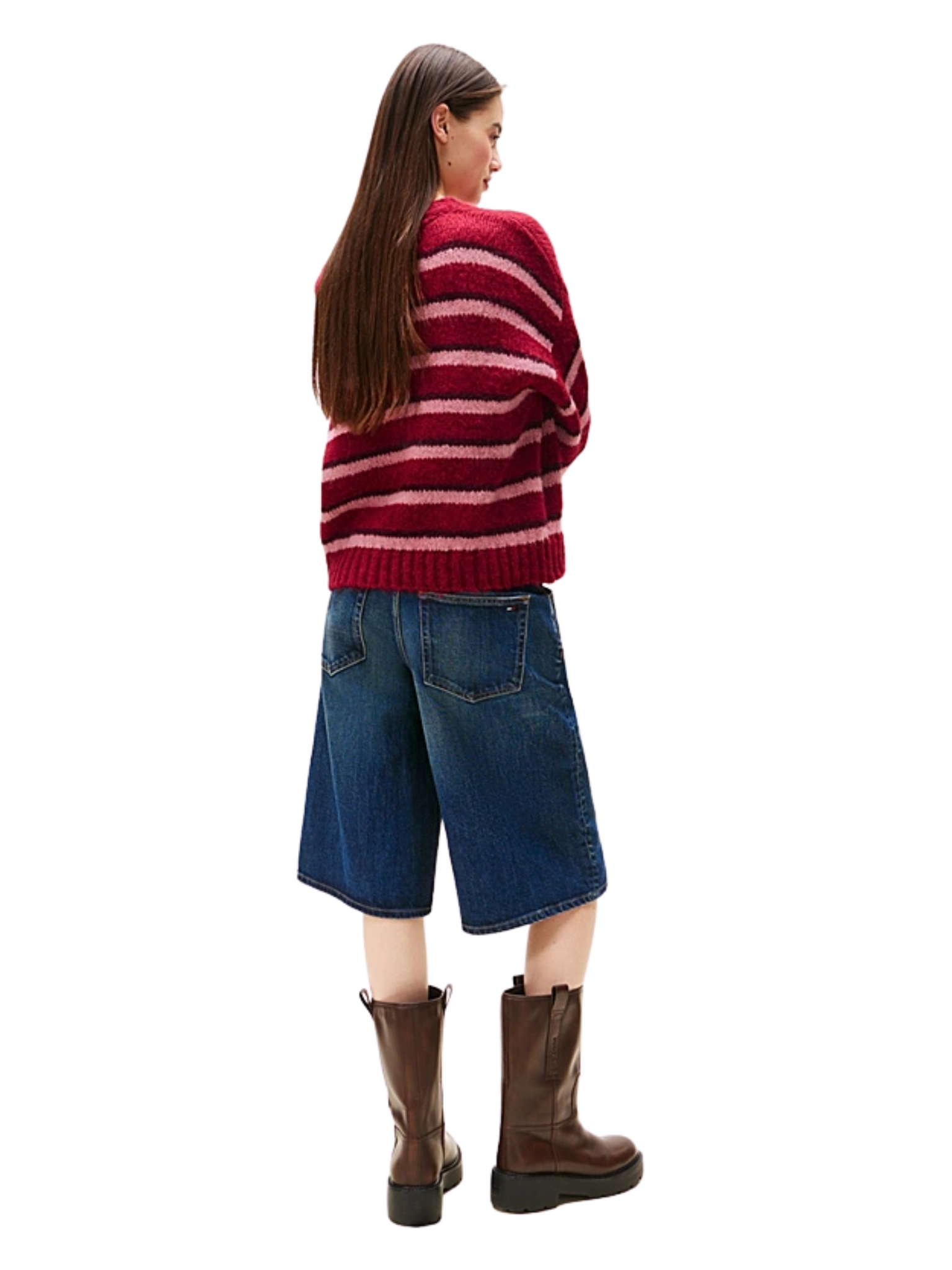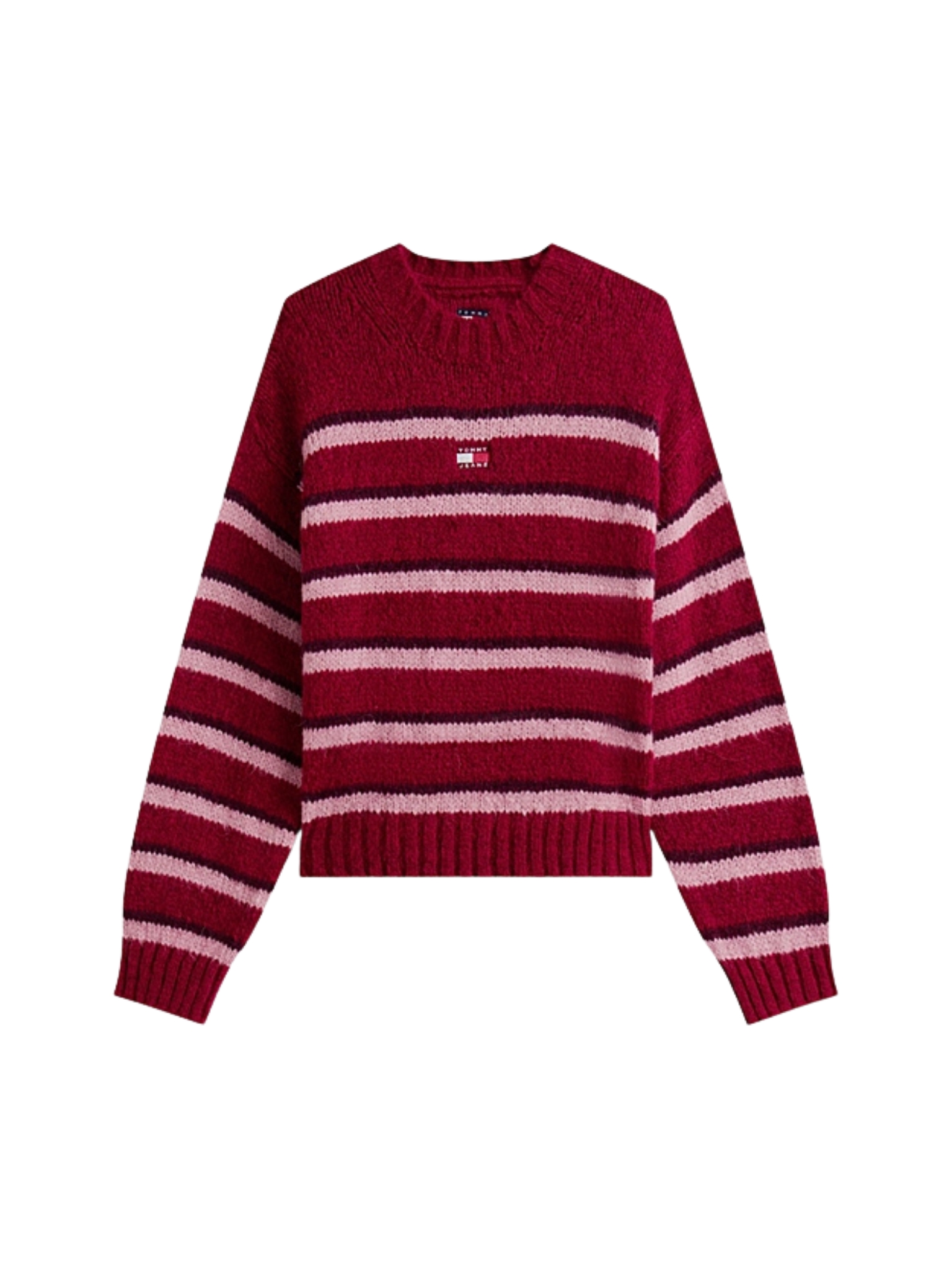 Il pullover relaxed fit in maglia, con il motivo a righe orizzontali all over, aggiunge una nota rétro ai tuoi look di tutti i giorni.